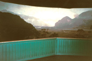 für ihre Installation auf, indem sie Diapositive von Landschaftsbildern